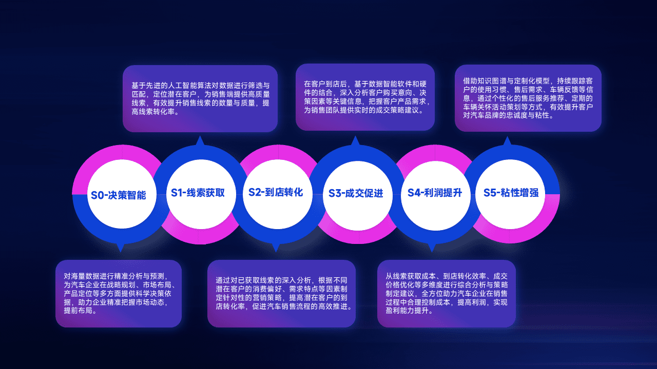 通过拓宽潜在客户来源、、优化线索分配并提高到店转化率,,,,以增强销售效率。。。。同时,,,,利用线索数据不断优化分析模型,,有效提升转化率,,,,扩大营销影响力。。。。
